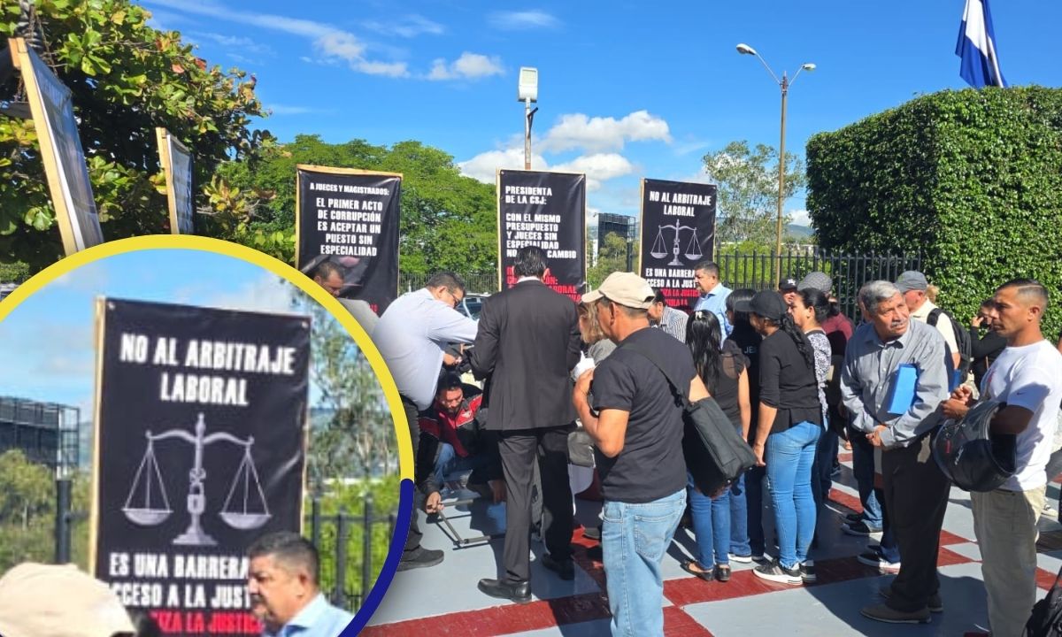 ¡Plantón! «No al arbitraje laboral», parte de los reclamos de un grupo de personas en la CSJ