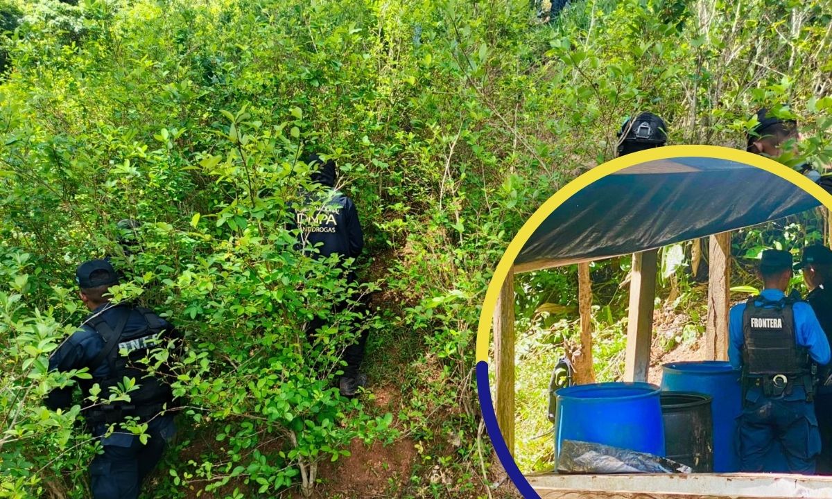 San Esteban, Olancho, 17 de septiembre de 2025. En una operación de alto impacto, agentes de la Dirección Nacional Policial Antidrogas (DNPA), localizaron y aseguraron 48,000 arbustos de supuesta hoja de coca, así como un laboratorio rústico utilizado para el procesamiento de pasta base, en una zona montañosa de la aldea Río Grande, municipio de San Esteban, Olancho.