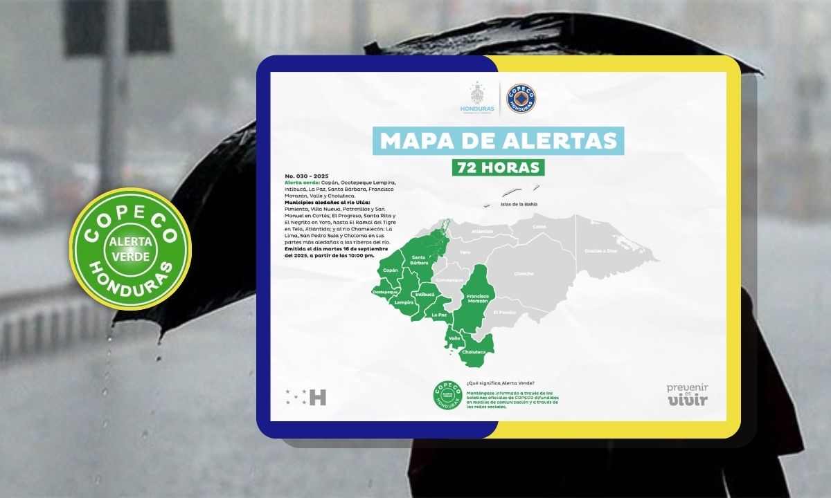 La Comisión Permanente de Contingencias (COPECO), emitió alerta verde para nueve departamentos y municipios aledaños al río Ulúa y Chamelecón por 72 horas, debido a las lluvias que se registrarán en Honduras.