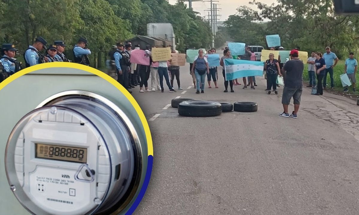 Pobladores de la comunidad Gran Villa, protestan en rechazo a la instalación de nuevos contadores, mantienen bloqueada la carretera en Villanueva, Cortés.