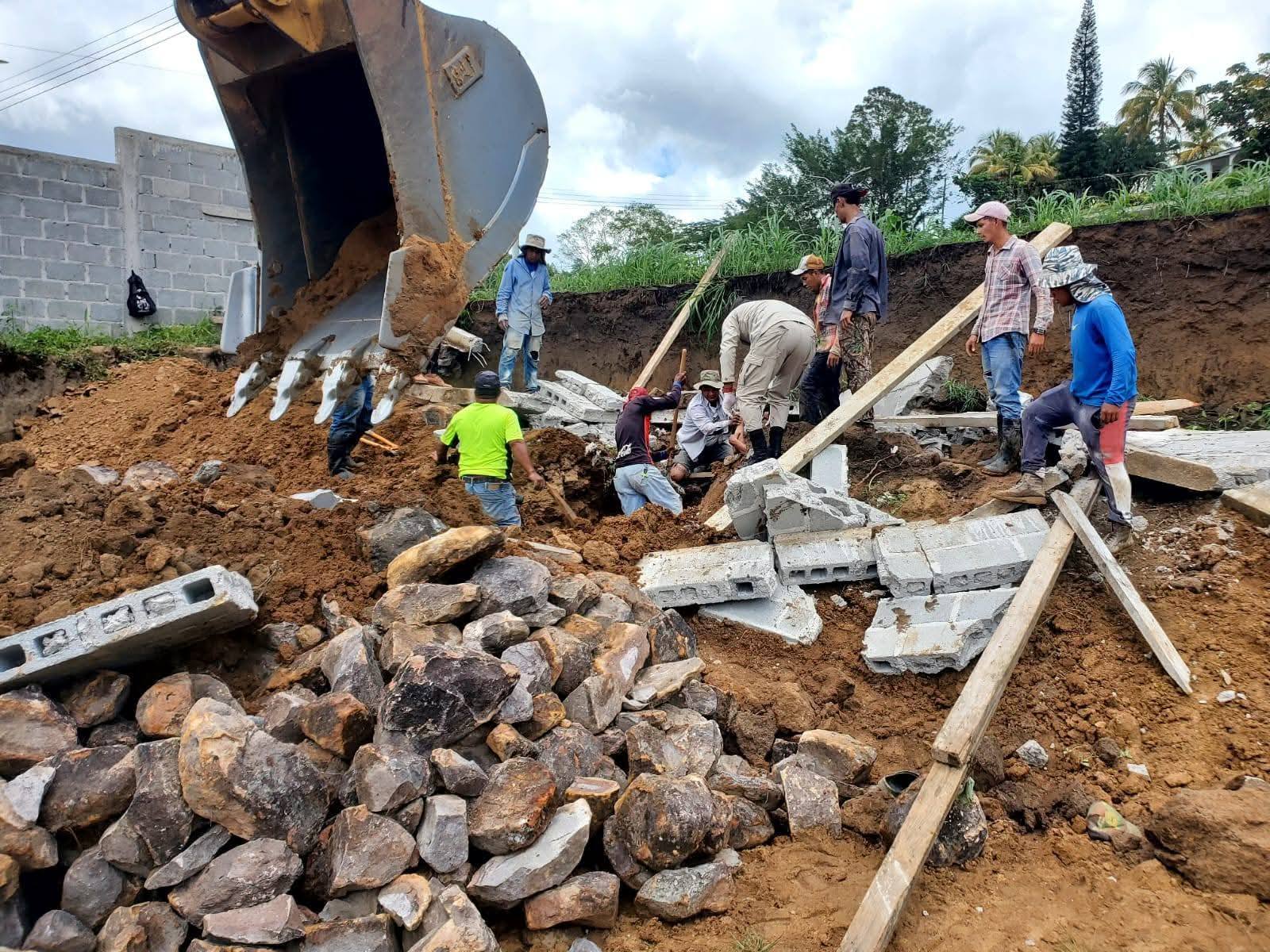 Siete obreros estuvieron a punto de morir soterrados por el colapso de un muro perimetral en una lotificadora de la ciudad de Danlí, El Paraíso.