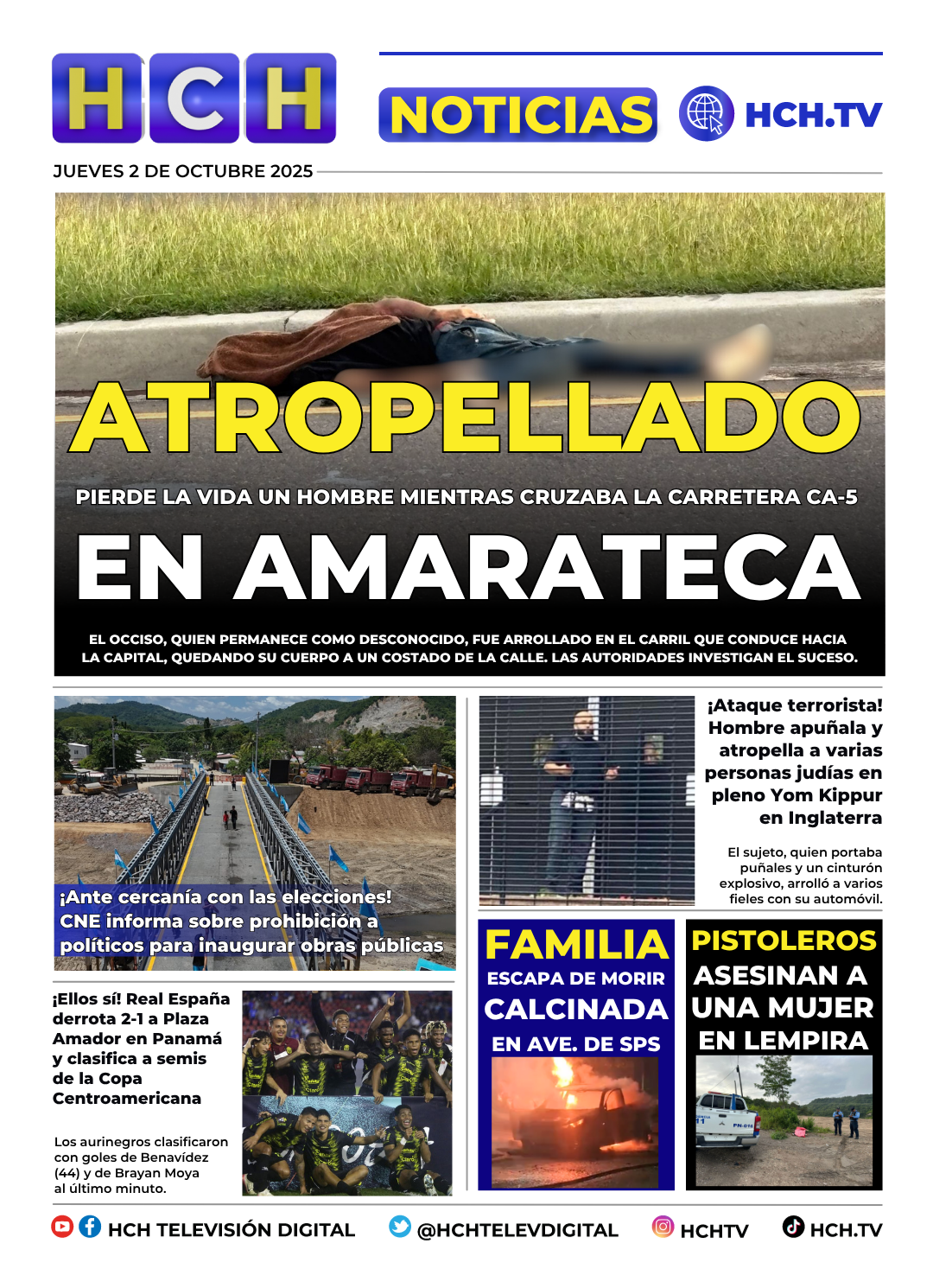 © 2025 - HCH Televisión Digital - Noticias de Honduras y el Mundo. Anillo Periférico, Complejo Empresarial Tegucigalpa, Honduras, C.A. Tel: (504) 2235-3245 / 2235-3246 / 2235-4875 / 2235-4876 LLÁMENOS GRATIS DESDE EE.UU: 3052801682 y 3052801735 © Copyright 2025 - HCH Televisión Digital. Todos nuestros contenidos están protegidos con derechos de autor.