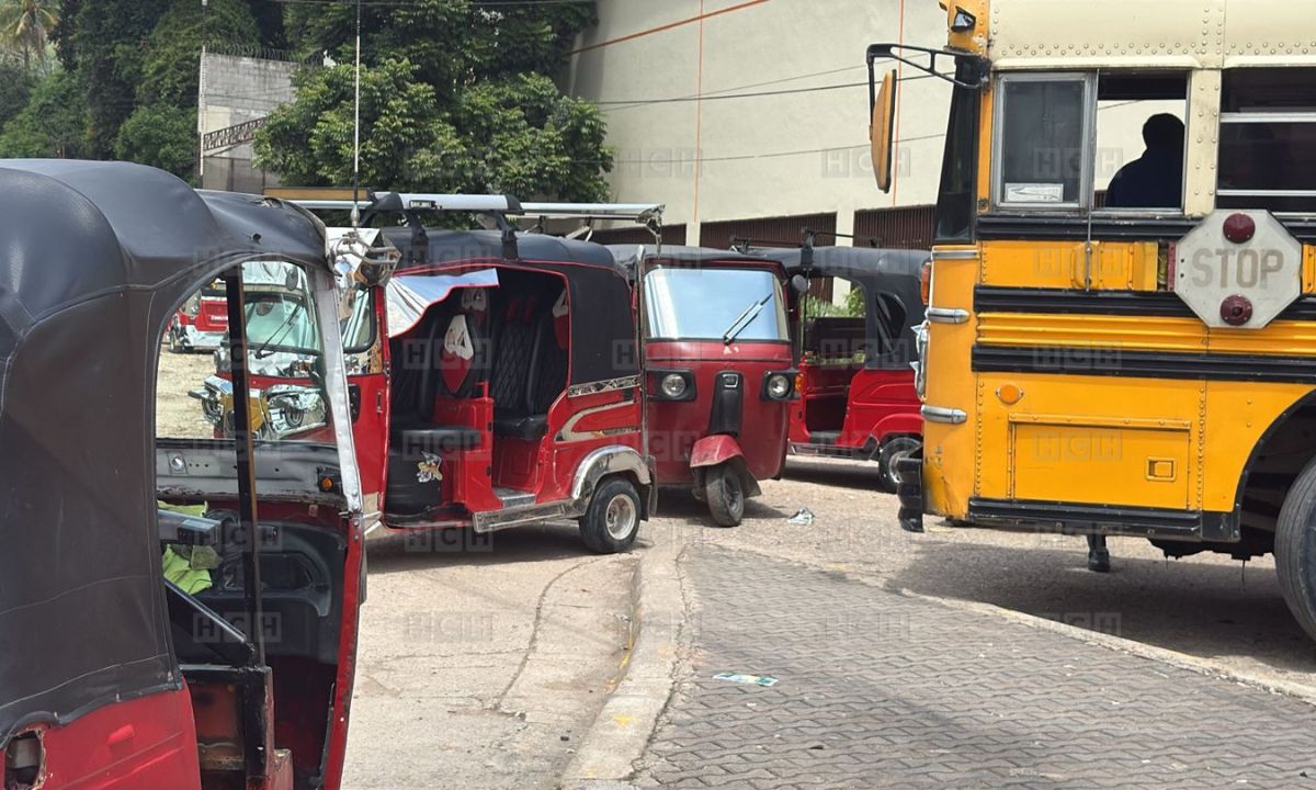 Conductores de autobuses, mototaxis y vehículos particulares, mantienen una protesta este miércoles en la calle que de la capital conduce hacia la aldea El Lolo, esto exigiendo reparación inmediata de esa vía.