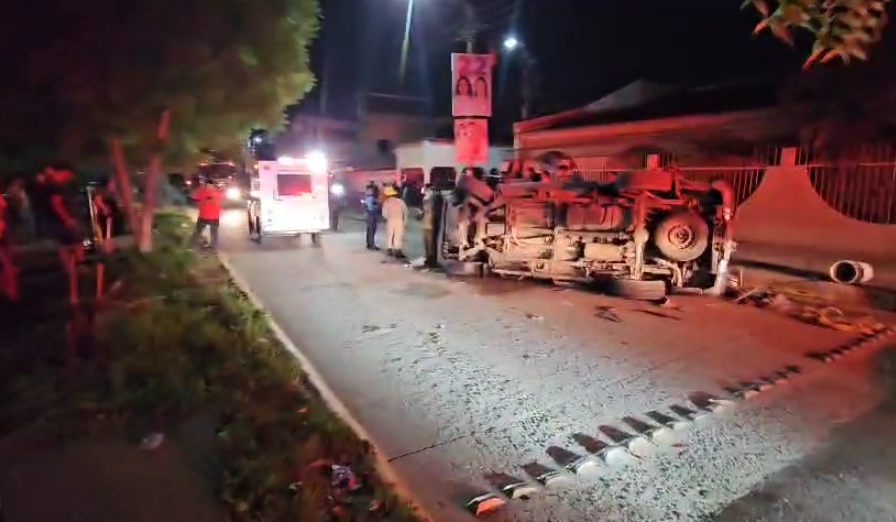 Según reportes, el afectado habría volcado tras viajar a altas velocidades y no percatarse en unos túmulos, colisionando contra otro auto y quedando con las llantas hacia arriba.