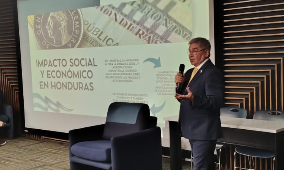 Durante su exposición, el diplomático hondureño destacó la importancia del programa “Hermano, Hermana Retorna a Casa”, una iniciativa del Gobierno de Honduras que brinda apoyo económico, psicológico y de reinserción social a los connacionales retornados desde los Estados Unidos.