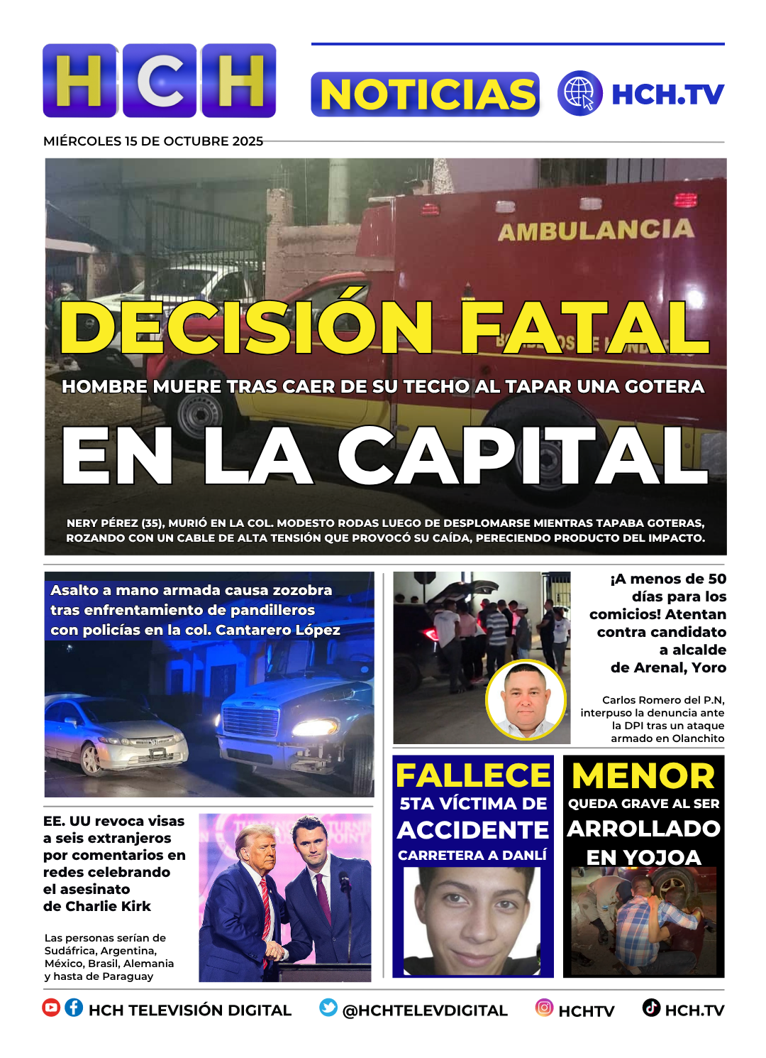 © 2025 - HCH Televisión Digital - Noticias de Honduras y el Mundo. Anillo Periférico, Complejo Empresarial Tegucigalpa, Honduras, C.A. Tel: (504) 2235-3245 / 2235-3246 / 2235-4875 / 2235-4876 LLÁMENOS GRATIS DESDE EE.UU: 3052801682 y 3052801735 © Copyright 2025 - HCH Televisión Digital. Todos nuestros contenidos están protegidos con derechos de autor.