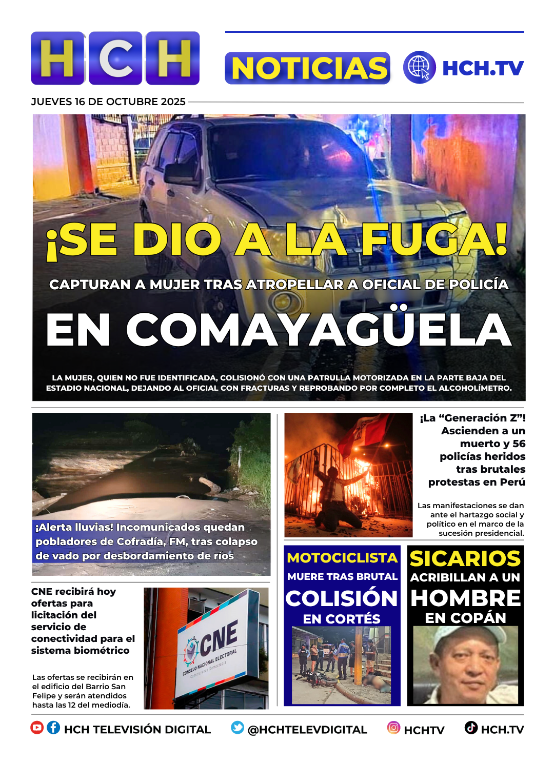 © 2025 - HCH Televisión Digital - Noticias de Honduras y el Mundo. Anillo Periférico, Complejo Empresarial Tegucigalpa, Honduras, C.A. Tel: (504) 2235-3245 / 2235-3246 / 2235-4875 / 2235-4876 LLÁMENOS GRATIS DESDE EE.UU: 3052801682 y 3052801735 © Copyright 2025 - HCH Televisión Digital. Todos nuestros contenidos están protegidos con derechos de autor.