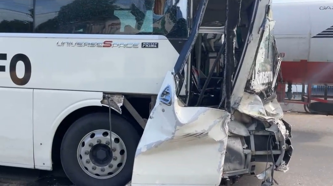 Dos unidades de transporte colisionaron dejando dos personas heridas, esto en la carretera principal del municipio de Villanueva, Cortés.