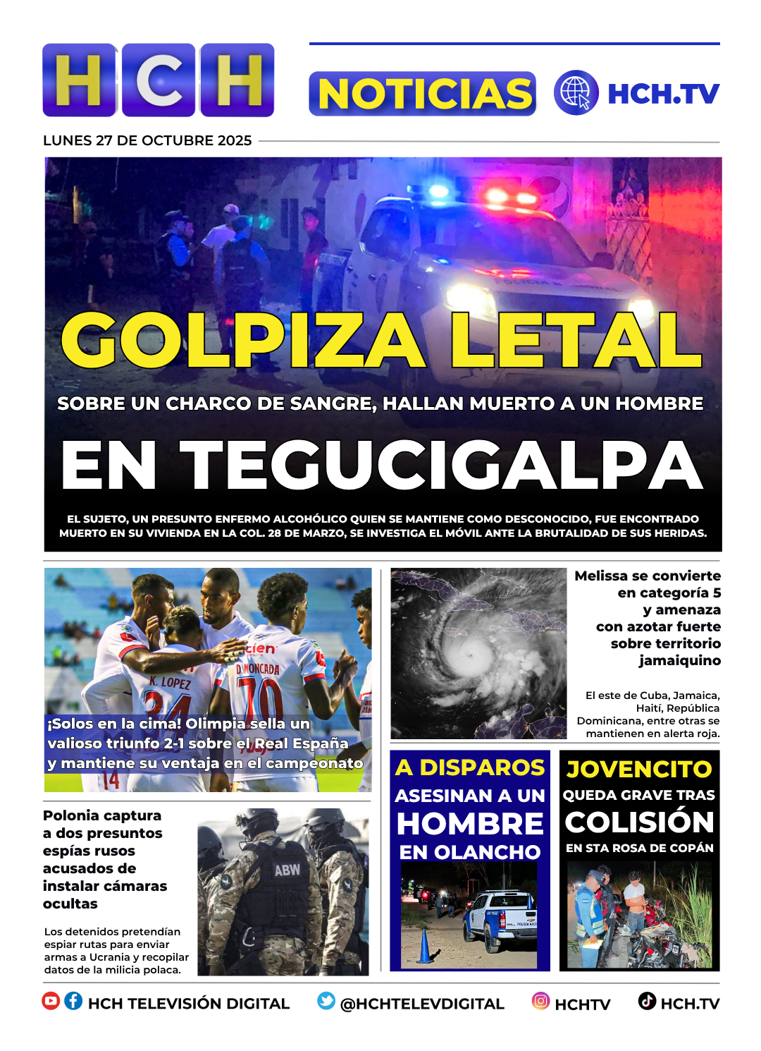 © 2025 - HCH Televisión Digital - Noticias de Honduras y el Mundo. Anillo Periférico, Complejo Empresarial Tegucigalpa, Honduras, C.A. Tel: (504) 2235-3245 / 2235-3246 / 2235-4875 / 2235-4876 LLÁMENOS GRATIS DESDE EE.UU: 3052801682 y 3052801735 © Copyright 2025 - HCH Televisión Digital. Todos nuestros contenidos están protegidos con derechos de autor.