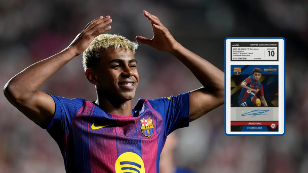 Se trata de un cromo edición ‘rookie’ de Lamine Yamal firmado por el propio futbolista blaugrana. Esta pieza del conjunto ‘DAKA Autographs’ 2023-24 presenta un acabado ‘Rainbow Holocene’ y ha sido evaluada por CGC con la calificación máxima de ‘GEM MINT 10’, lo que significa que se encuentra en perfecto estado.