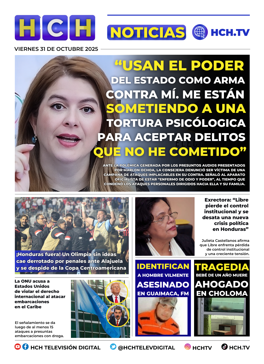 © 2025 - HCH Televisión Digital - Noticias de Honduras y el Mundo. Anillo Periférico, Complejo Empresarial Tegucigalpa, Honduras, C.A. Tel: (504) 2235-3245 / 2235-3246 / 2235-4875 / 2235-4876 LLÁMENOS GRATIS DESDE EE.UU: 3052801682 y 3052801735 © Copyright 2025 - HCH Televisión Digital. Todos nuestros contenidos están protegidos con derechos de autor.