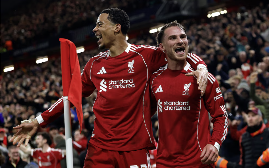 Luego de dos llegadas frustradas, una de ellas con tapada mediante de Thibaut Courtois, una de las figuras del local sorprendió en el área con un cabezazo a la salida de un balón detenido lanzado por Dominik Szoboszlai y marcó el 1-0 que sentenció el triunfo a los 60 minutos en Inglaterra.