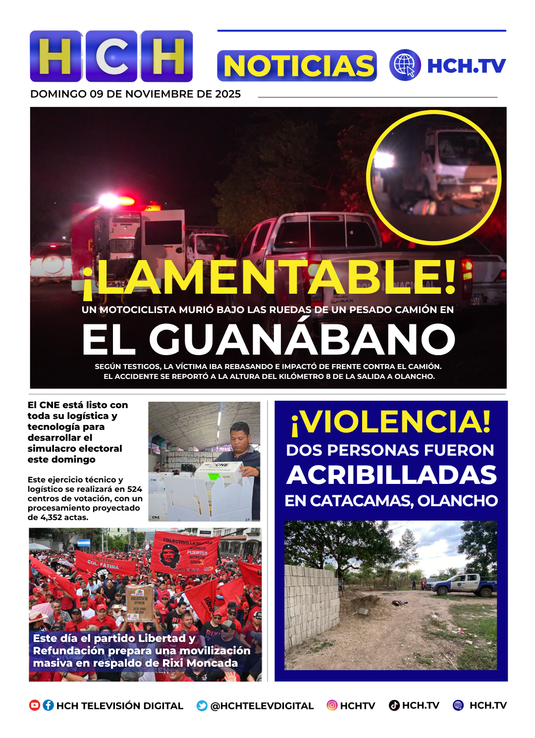 © 2025 - HCH Televisión Digital - Noticias de Honduras y el Mundo. Anillo Periférico, Complejo Empresarial Tegucigalpa, Honduras, C.A. Tel: (504) 2235-3245 / 2235-3246 / 2235-4875 / 2235-4876 LLÁMENOS GRATIS DESDE EE.UU: 3052801682 y 3052801735 © Copyright 2025 - HCH Televisión Digital. Todos nuestros contenidos están protegidos con derechos de autor.