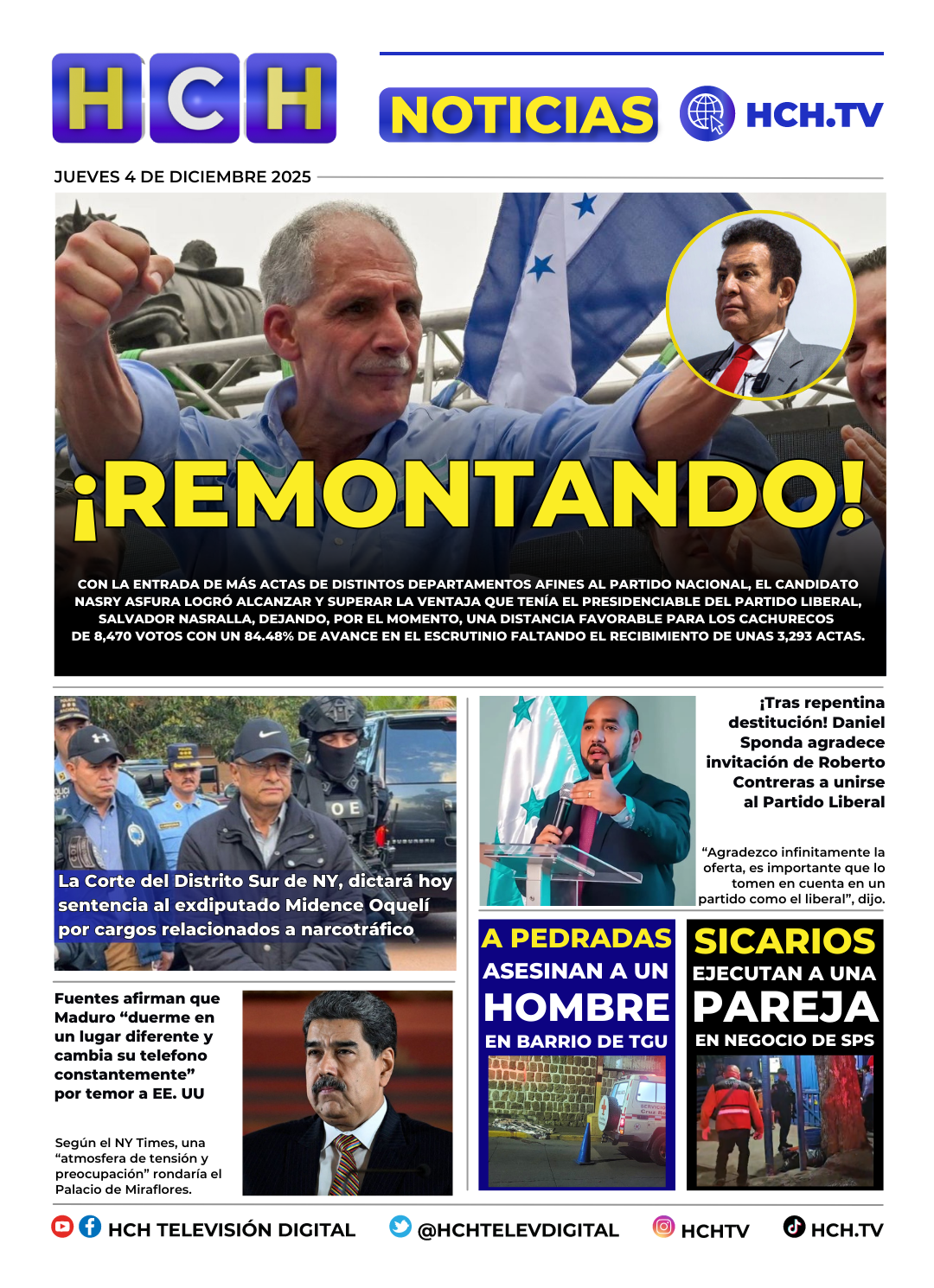 © 2025 - HCH Televisión Digital - Noticias de Honduras y el Mundo. Anillo Periférico, Complejo Empresarial Tegucigalpa, Honduras, C.A. Tel: (504) 2235-3245 / 2235-3246 / 2235-4875 / 2235-4876 LLÁMENOS GRATIS DESDE EE.UU: 3052801682 y 3052801735 © Copyright 2025 - HCH Televisión Digital. Todos nuestros contenidos están protegidos con derechos de autor.