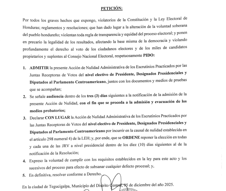 Partido Libre pide Nulidad de Elecciones a nivel presidencial en Honduras