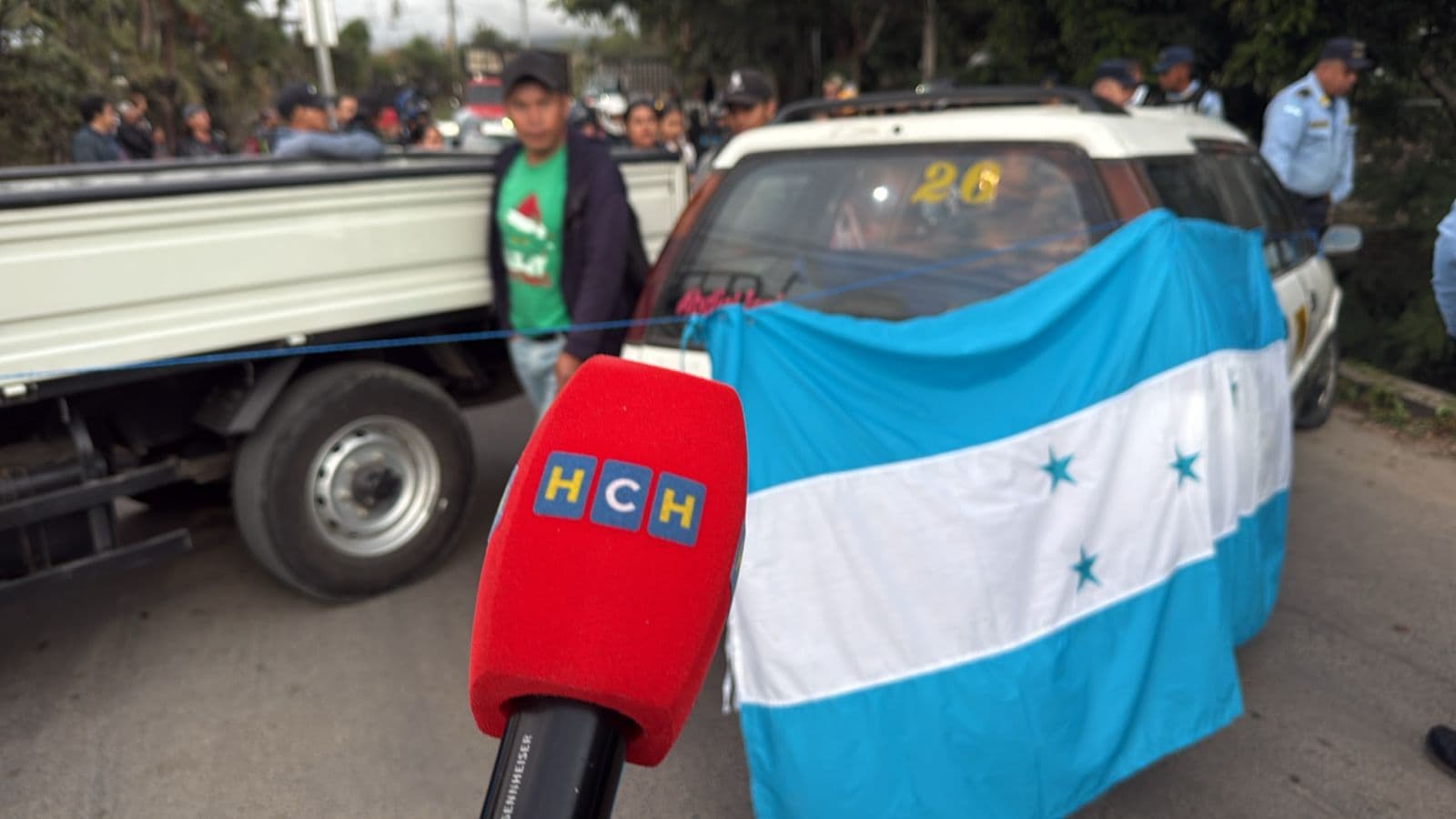 Pobladores de zonas aledañas a la aldea Mateo del Distrito Central, protestan en la carretera principal exigiendo a las autoridades la pavimentación de la vía.