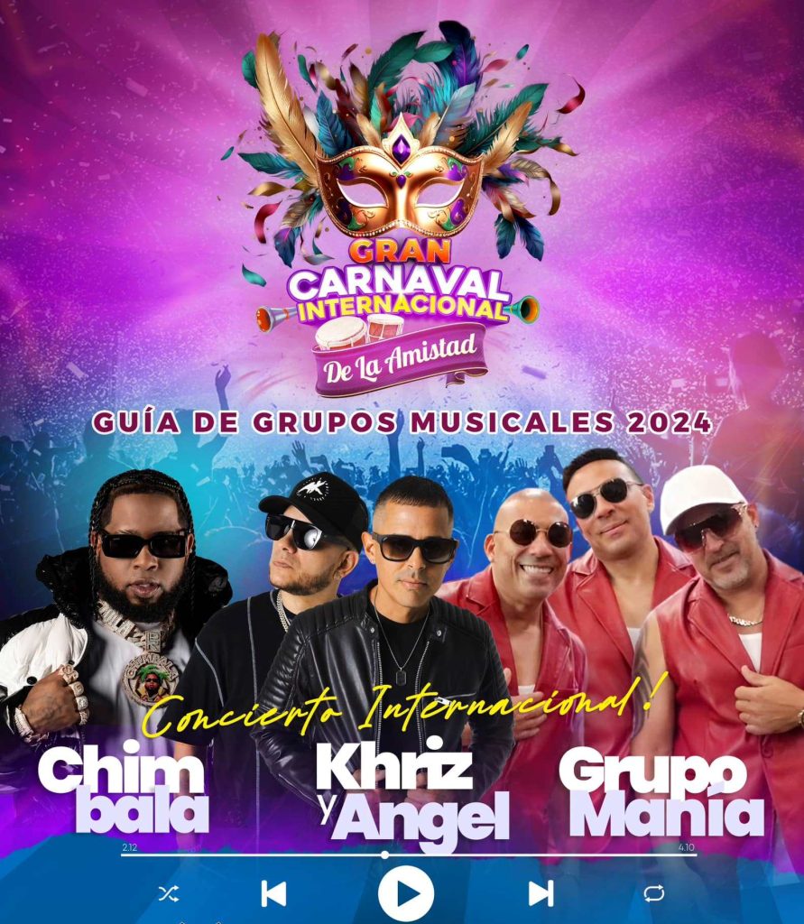 Chimbala, Khriz y Ángel y el grupo Manía fueron los artistas internacionales que estuvieron presentes en este Carnaval de la Amistad 2024.
