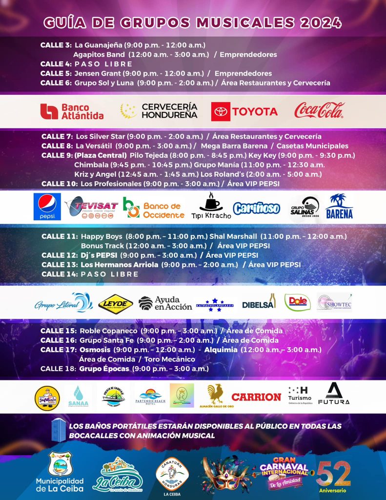 Asimismo, artistas hondureños como Pilo Tejeda, Key Key, Silver Star, Hermanos Arriola y otros artistas nacionales dieron su show en este gran Carnaval.