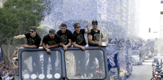 Miles de aficionados salen a las calles de Los Ángeles para...