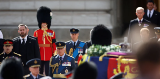 Miembros de la realeza salen de Westminster Hall después del servicio...