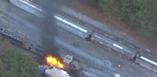 Un tren que transportaba miles de galones de diesel se descarrila...