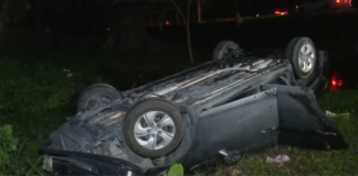 Llantas arriba quedó un turismo que volcó en el segundo anillo...