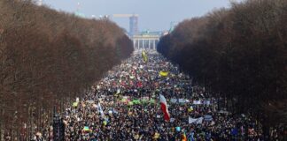 Miles de personas se manifiestan contra la invasión de Rusia a...