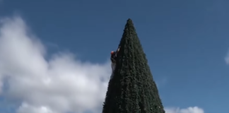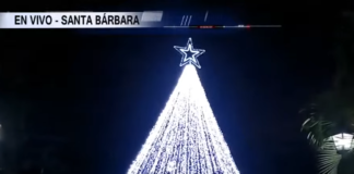 Encienden árbol navideño en el parque central de Santa Bárbara