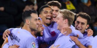 Frenkie de Jong sonríe con Xavi