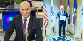 El periodista hondureño Javier Castro quien ganó el premio Emmy recibe...
