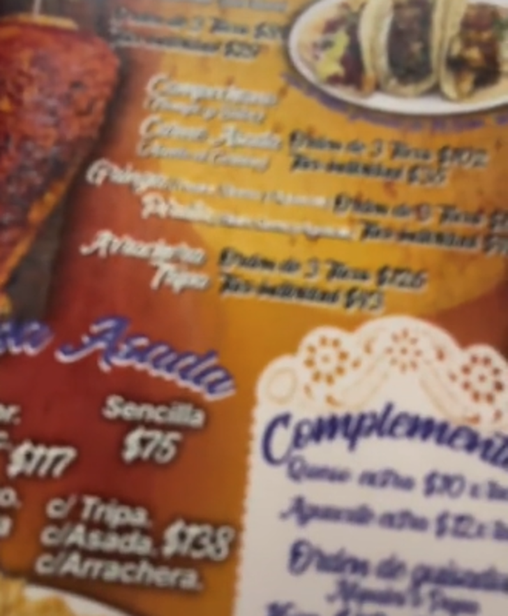 También en la grabación el chico mostró el menú del lugar, que la verdad no se ve muy bonito que digamos. Es una impresión bastante simple con colores llamativos.