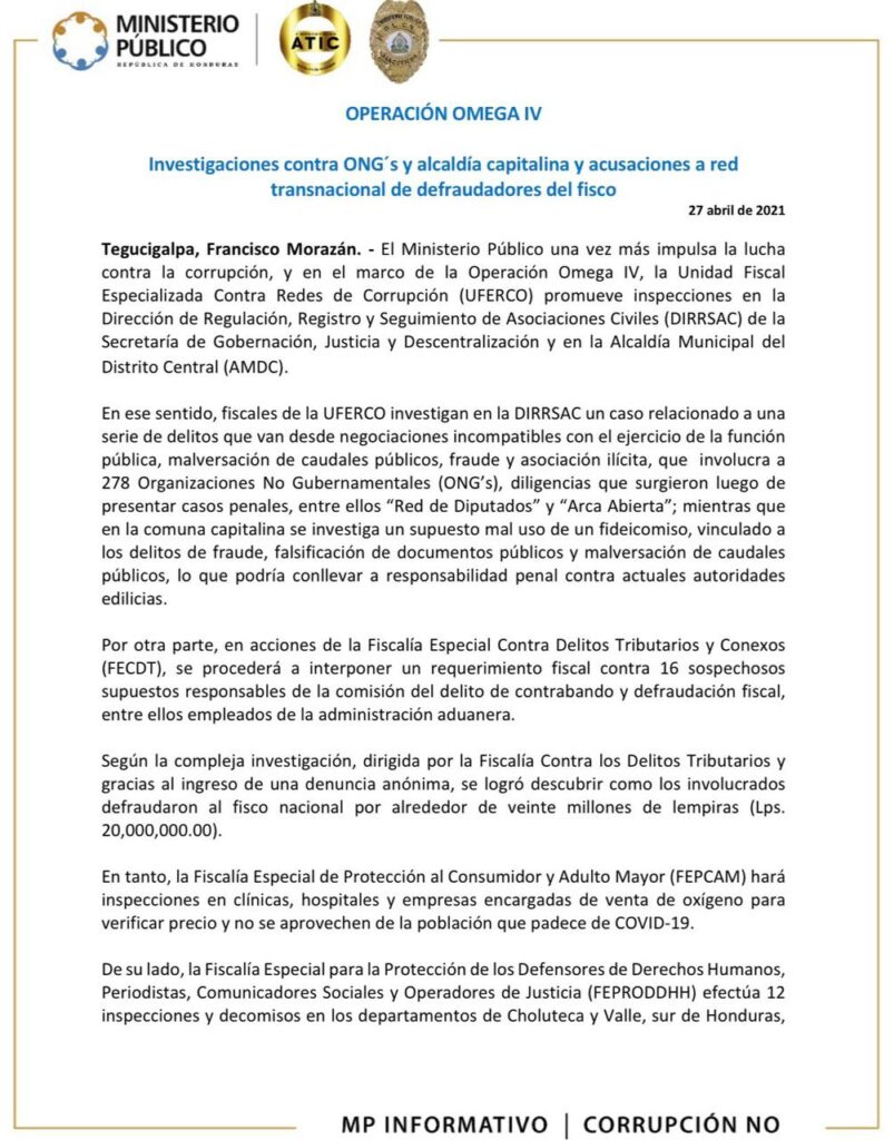 En marcha #OperaciónOmegaIV contra ONG´s y alcaldía capitalina, y una red transnacional de defraudadores del fisco