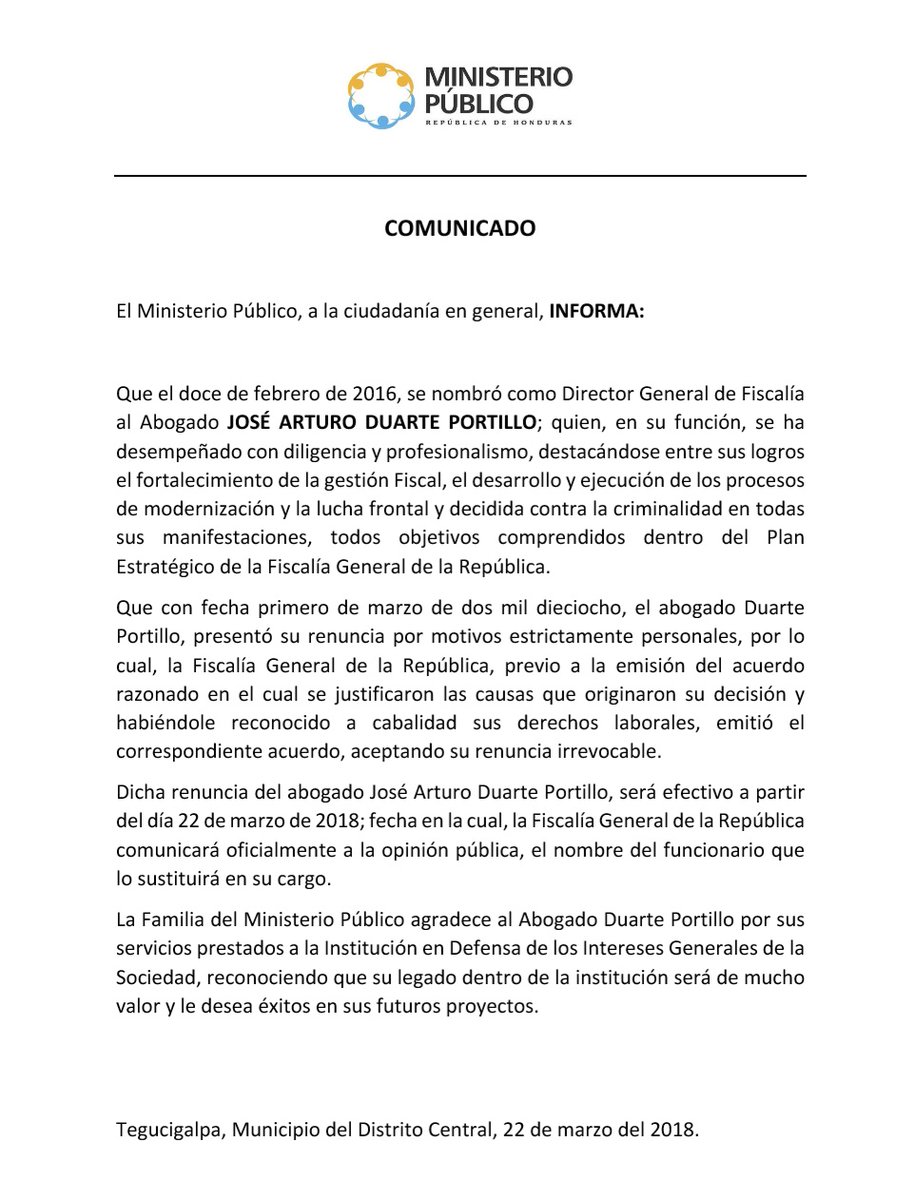 José Arturo Duarte Portillo deja su cargo como Director General de Fiscalía