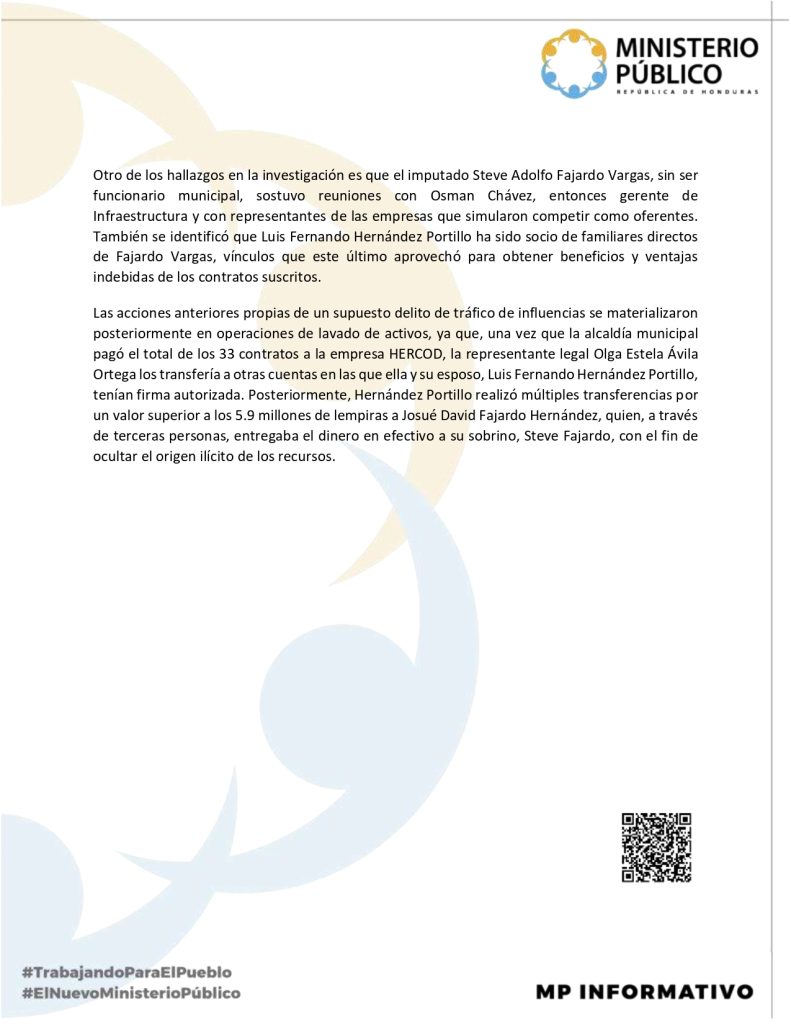 La acusación se centra en 33 contratos fraudulentos adjudicados entre julio de 2023 y abril de 2024 a la empresa Constructora HERCOD S. de R.L., destinados al mejoramiento vial, en los que participaron representantes de empresas y empleados municipales en reuniones previas para planificar la adjudicación irregular.