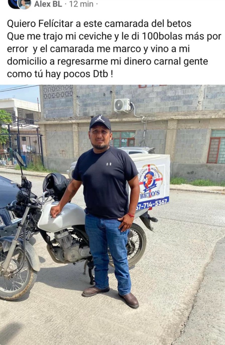Cuando llegó al domicilio de Alex, recibió el dinero por el pago de los productos. En el camino de regreso, se percató que el cliente había pagado de más por el ceviche, por lo que el repartidor se apresuró para llegar a la casa nuevamente y devolverle la diferencia a Alex.