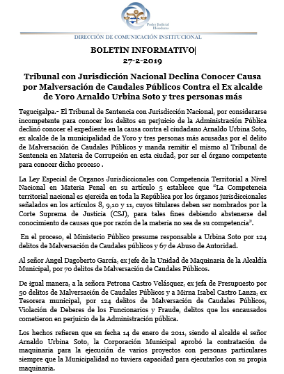 — Poder Judicial HN (@PJdeHonduras) February 27, 2019
