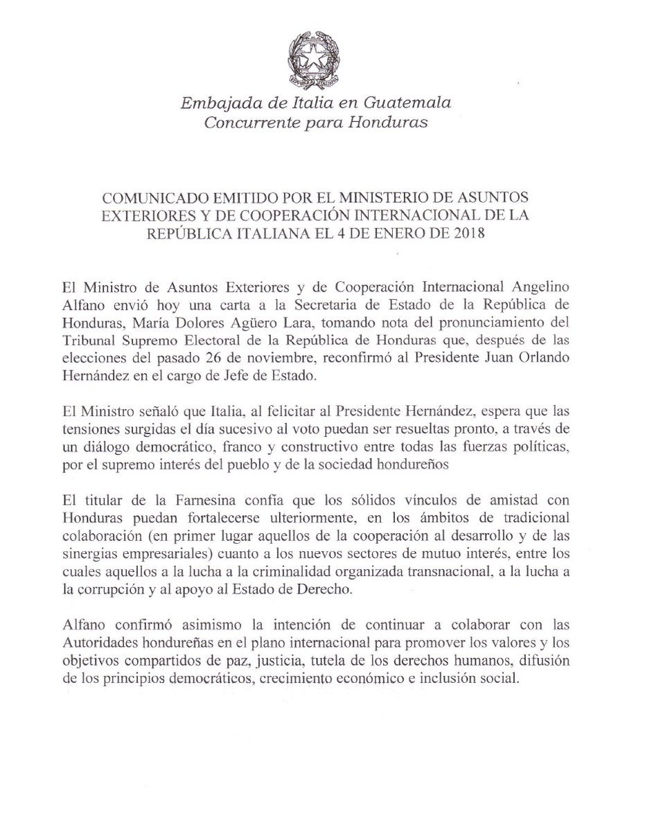 Gobierno de Italia felicita al presidente Hernández por su triunfo en las elecciones generales