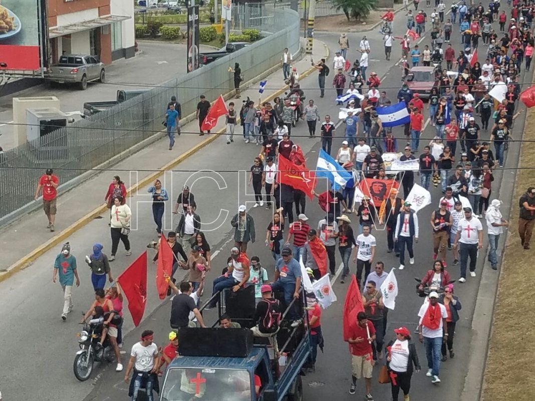 En una marcha pacífica la Alianza de Oposición se desplazó la mañana de este domingo por el bulevar de las fuerzas armadas del Distrito Central.