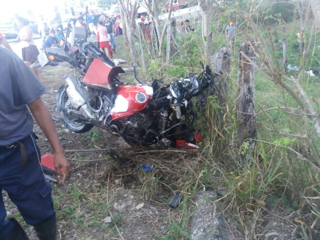 El hecho vial se dio entre una rastra cargada de sal, con placas AAS7944 y una motocicleta con placas MC-72495.