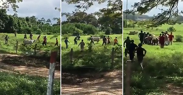 ¡ A Pedradas ! matan una vaca en Venezuela para robar su carne (VIDEO)