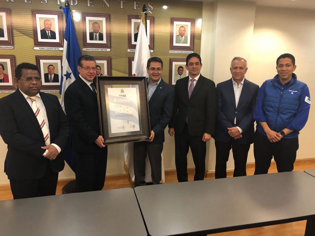 Atendiendo la convocatoria del Tribunal Supremo Electoral el presidente electo Juan Orlando Hernández Alvarado se presentó ante los magistrados del ente para recibir el certificado que lo acredita como Presidente Constitucional de la Republica 2018-2022.