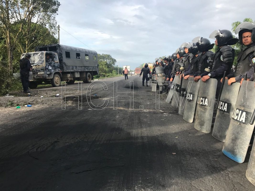 Un fuerte contingente militar desalojo esta mañana de forma pacífica a un grupo de manifestantes que mantenían tomada la carretera CA-13 en la comunidad la Ceibita en el municipio de Tocoa, en el departamento de Colon.