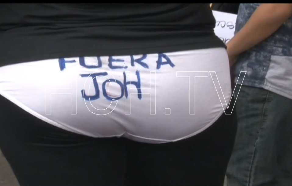 Muchas marchaban con sus rostros cubiertos , mientas que otras portaban blúmeres de color blanco con la leyenda “Fuera JOH” siendo esta una inusual forma de protestar ya que se sienten cansadas de la violación a sus derechos y que las muertes de cientos de mujeres queden en la impunidad. RM