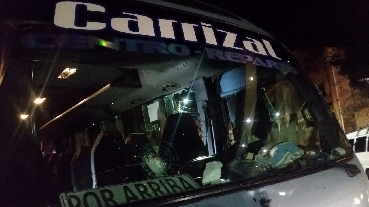 La unidad de la ruta Carrizal-Centro-Reparto color azul con numero de operación 479 fue atacada por los facinerosos que lograron herir al conductor Marvin Martinez.