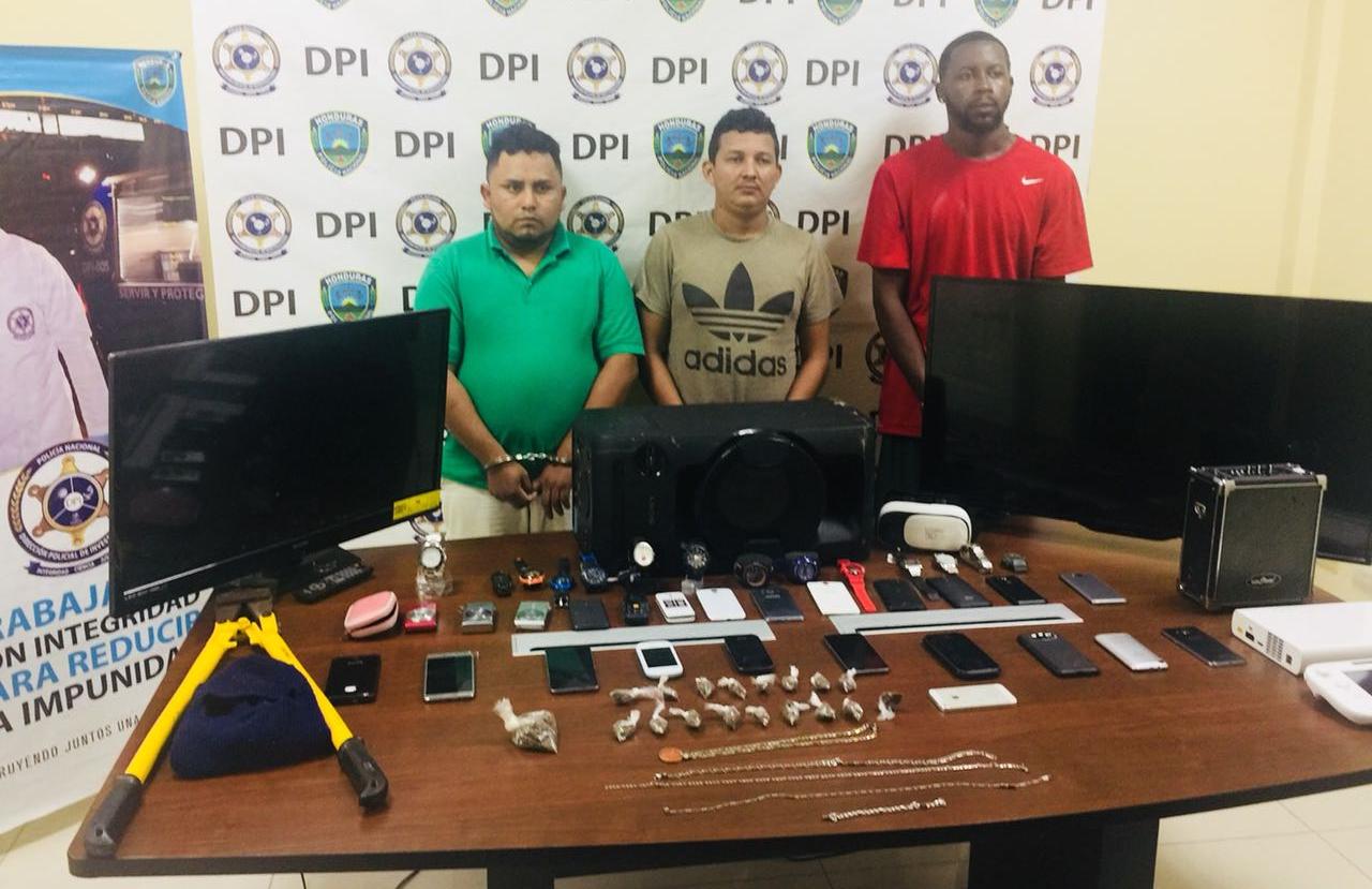 Roatán, Islas de la Bahía. El decomiso de artículos, joyas, teléfonos celulares, droga y la detención de tres integrantes de una banda delictiva es el resultado de un operativo realizado este sábado por la Policía Nacional en el barrio Pensacola, Coxen Hole y barrio Los Fuertes de ese municipio.