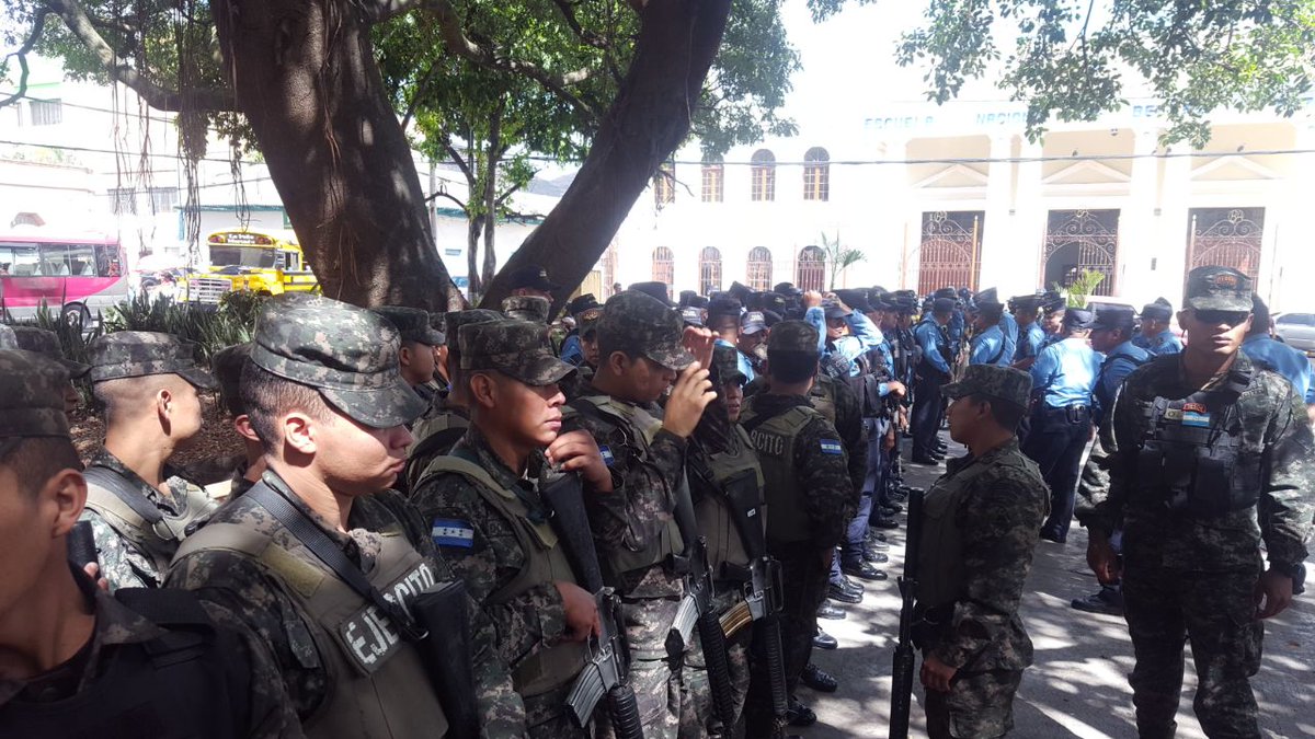 Un fuerte contingente de la policía nacional, policía preventiva, miembros de la Dirección policial de Investigación (DPI) Elementos de la Policía Militar (PM) entre otras fuerzas de seguridad se encuentras a inmediaciones del parque La Libertad ya listos para desplazarse por los diferentes mercados así como en el casco urbano para brindar protección a los ciudadanos.