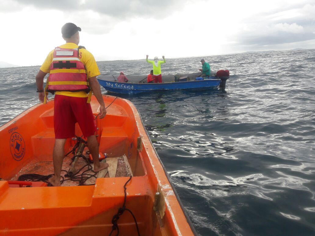 Quedaron varados a 10 millas de las costas de Cuero y Salado, departamento de Atlántida, luego que el motor de su lancha se dañara.