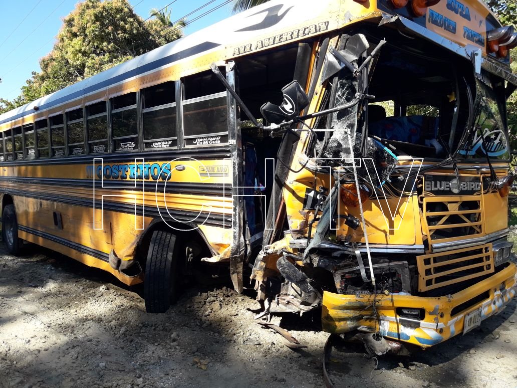 En carretera que conduce a Corinto un pick up de color azul perdió el control yéndose a estrella de frente contra el bus, que cubre la ruta Puerto Cortes- Frontera placa AMM-4129,que transitaba lleno de pasajeros.