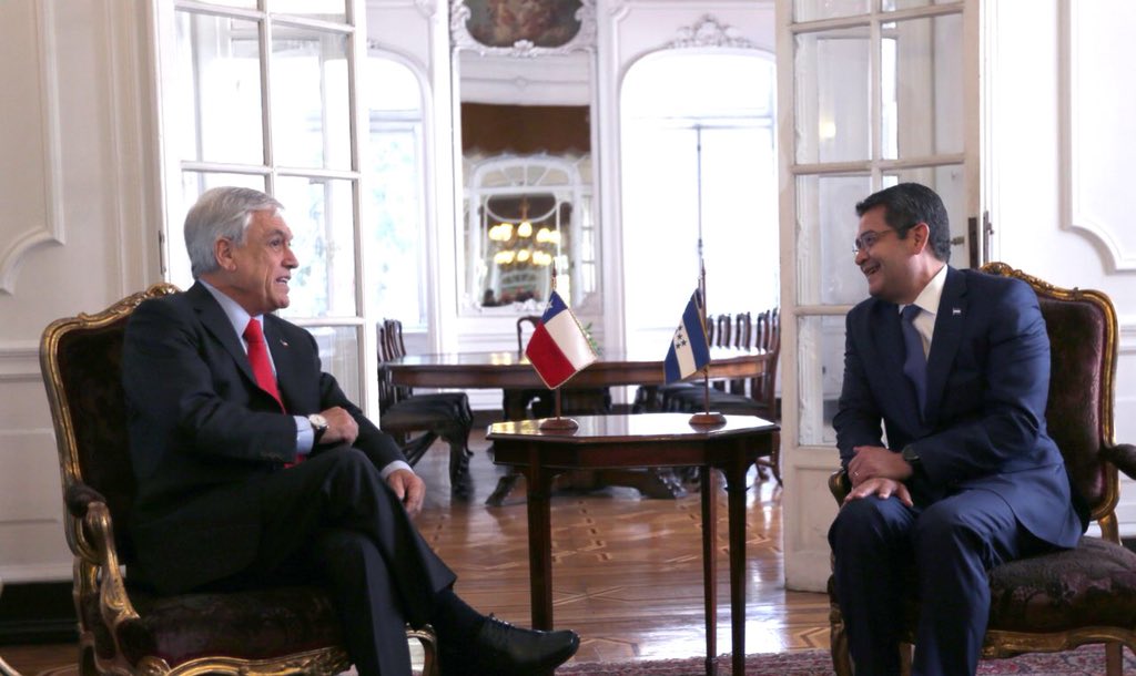 Pdte. @JuanOrlandoH reunido con el Sr. @sebastianpinera, en donde consolidan relaciones históricas bilaterales. #Honduras #Chile pic.twitter.com/BAkwZiLt3o