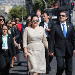 El presidente Juan Orlando Hernández y la Primera Dama, Ana García de Hernández ingresan al Congreso Nacional para participar en el traspaso de mando del presidente electo de Chile, Sebastián Piñera.